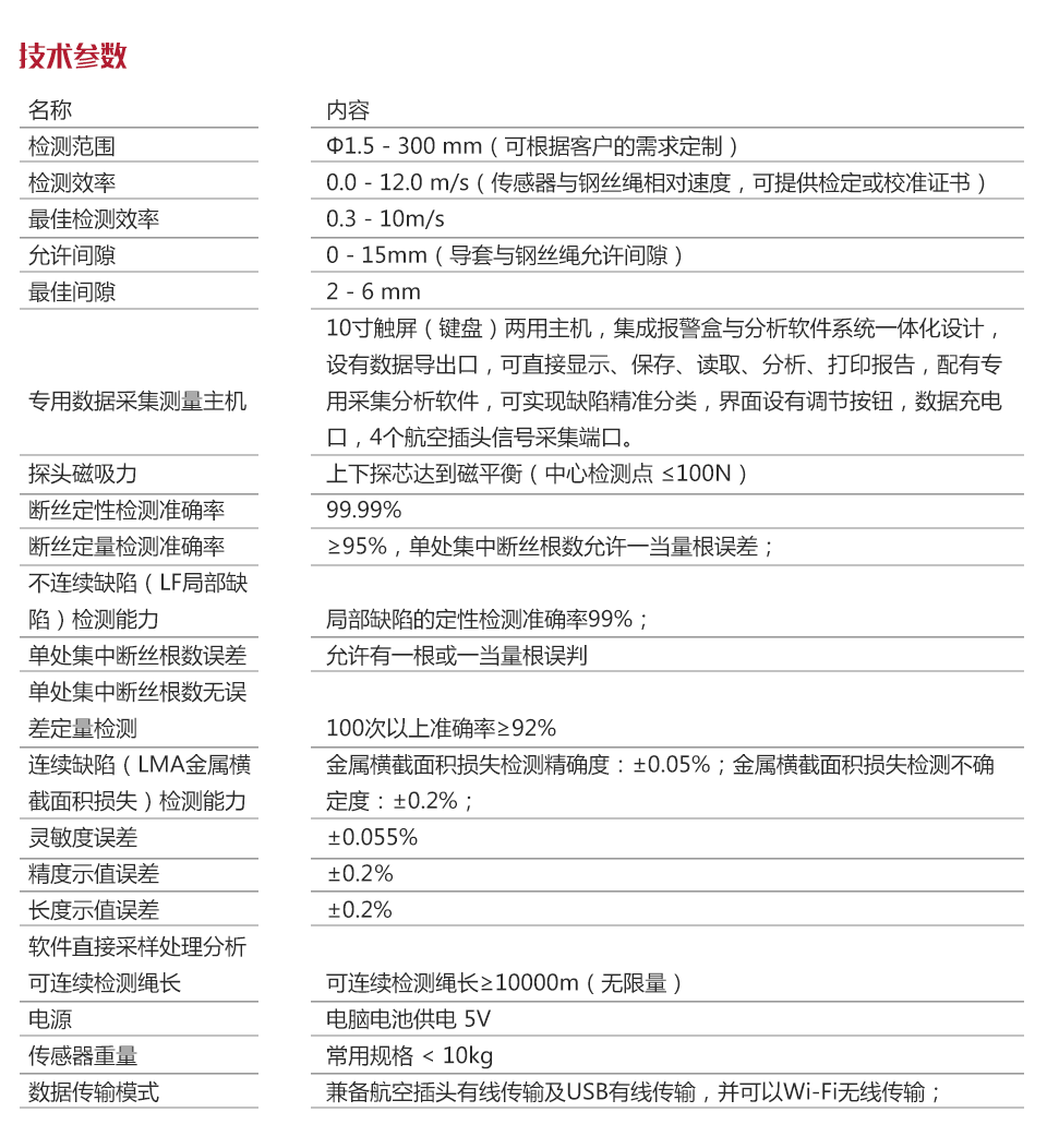 | 軟件直接采樣處理分析,可連續檢測繩長 | 可連續檢測繩長≥10000m(無限量) |