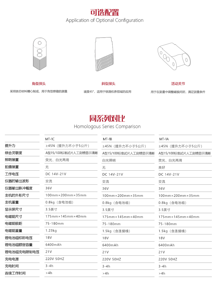 ?儀器可根據(jù)用戶(hù)要求及檢驗(yàn)部件的特殊性配置適用的電磁軛,儀器增設(shè)了自動(dòng)開(kāi)工校驗(yàn)、儀器指標(biāo)測(cè)試等管理功能。