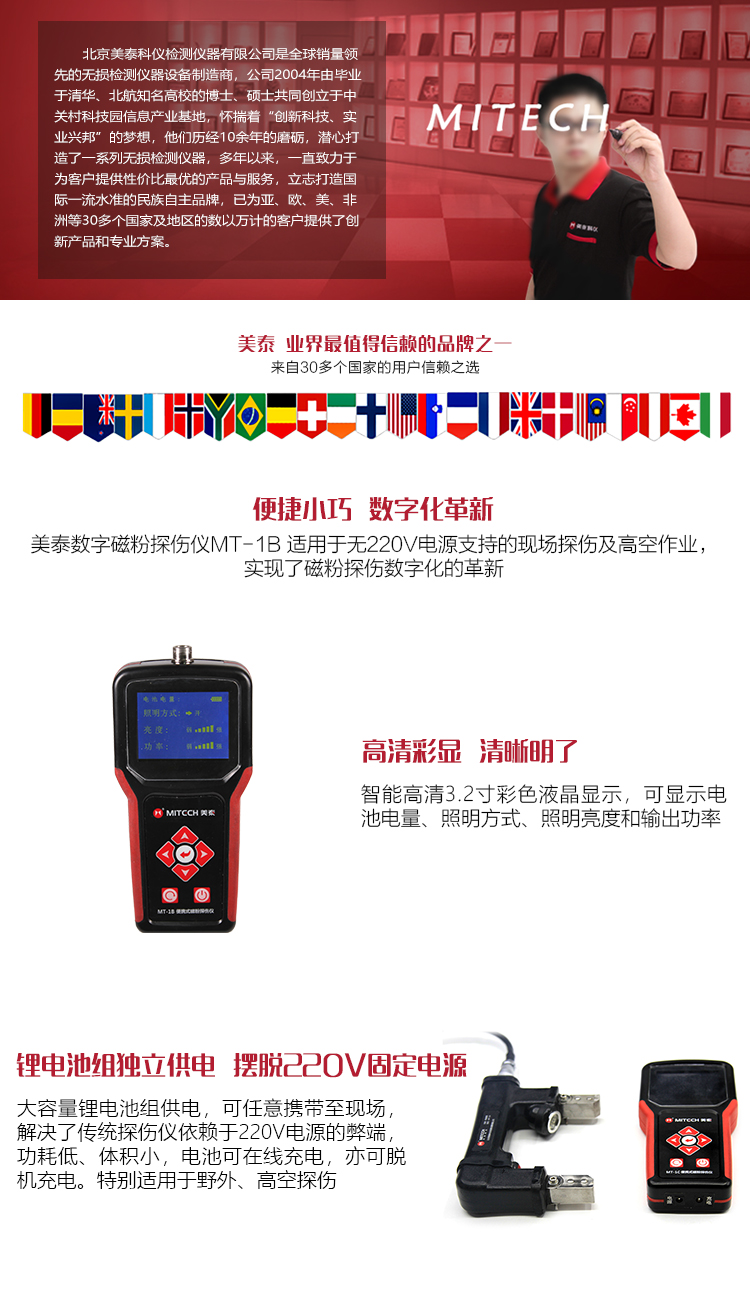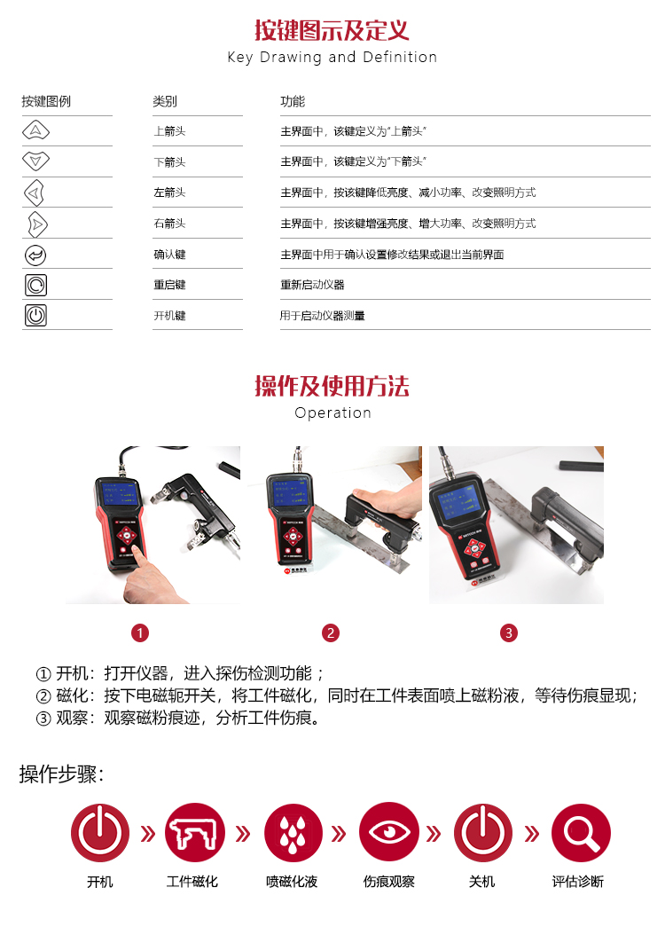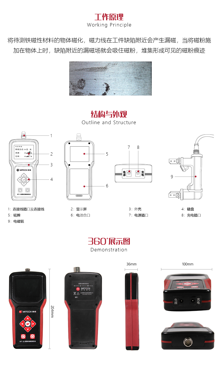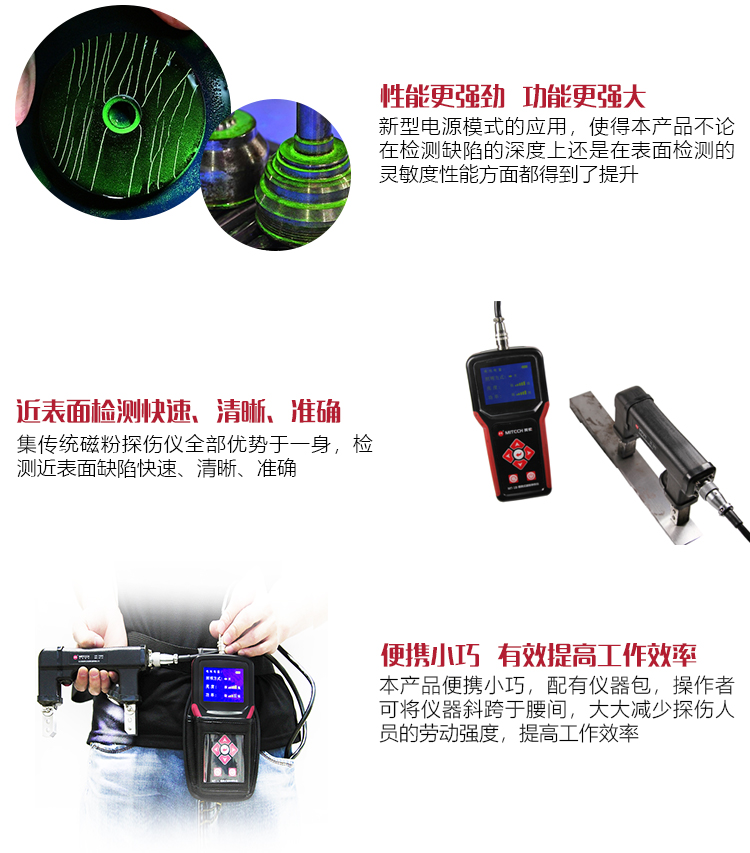 ?新型電源模式的應(yīng)用,使本產(chǎn)品不論在檢測缺陷的深度還是在檢測表面的靈敏度方面都得到了提升;
