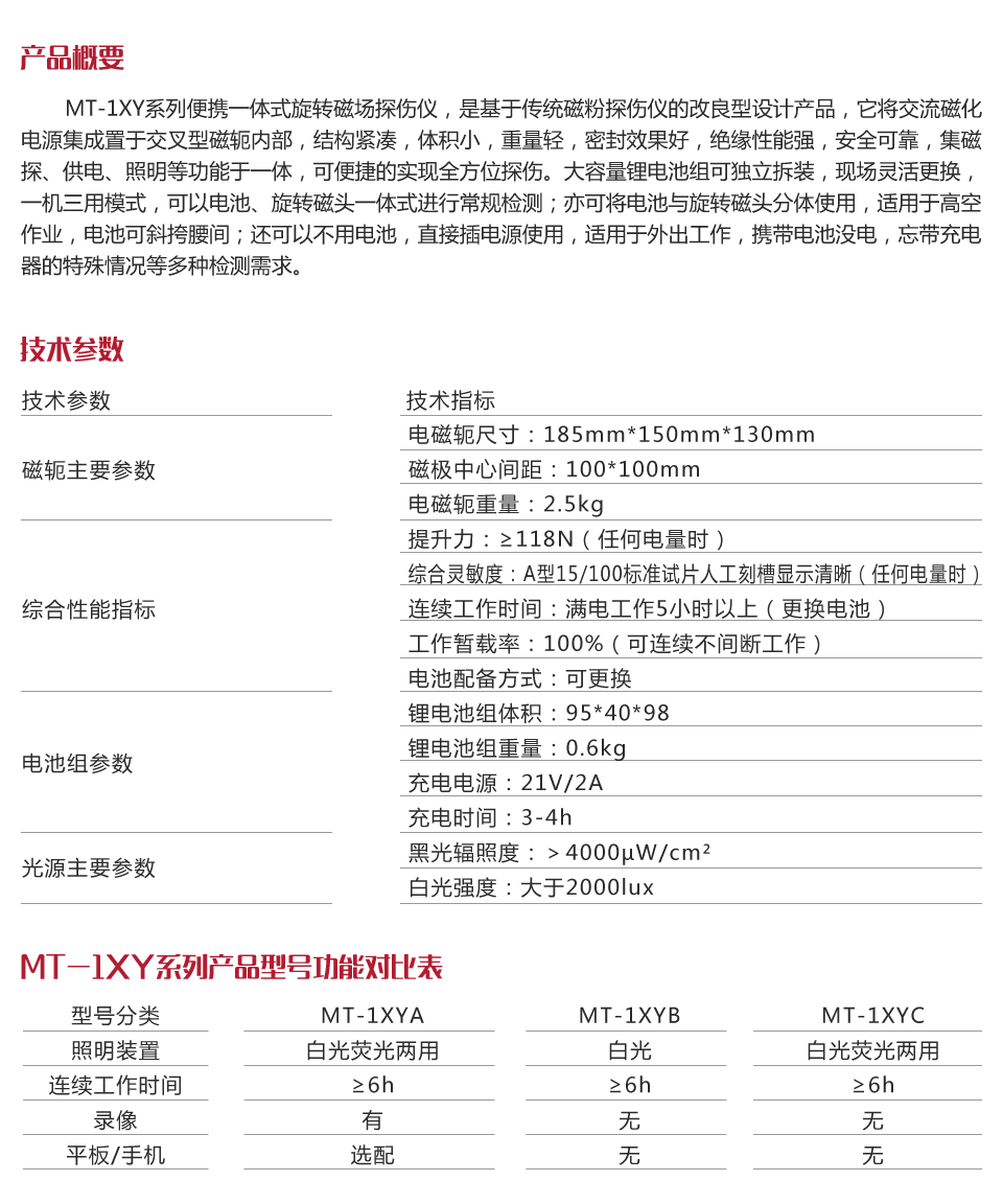 | 電磁軛尺寸 | 185mm*150mm*130mm |