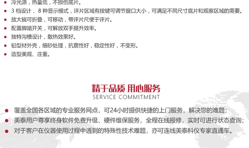 6、放大鏡可折疊,可移動,帶評片尺便于評片。