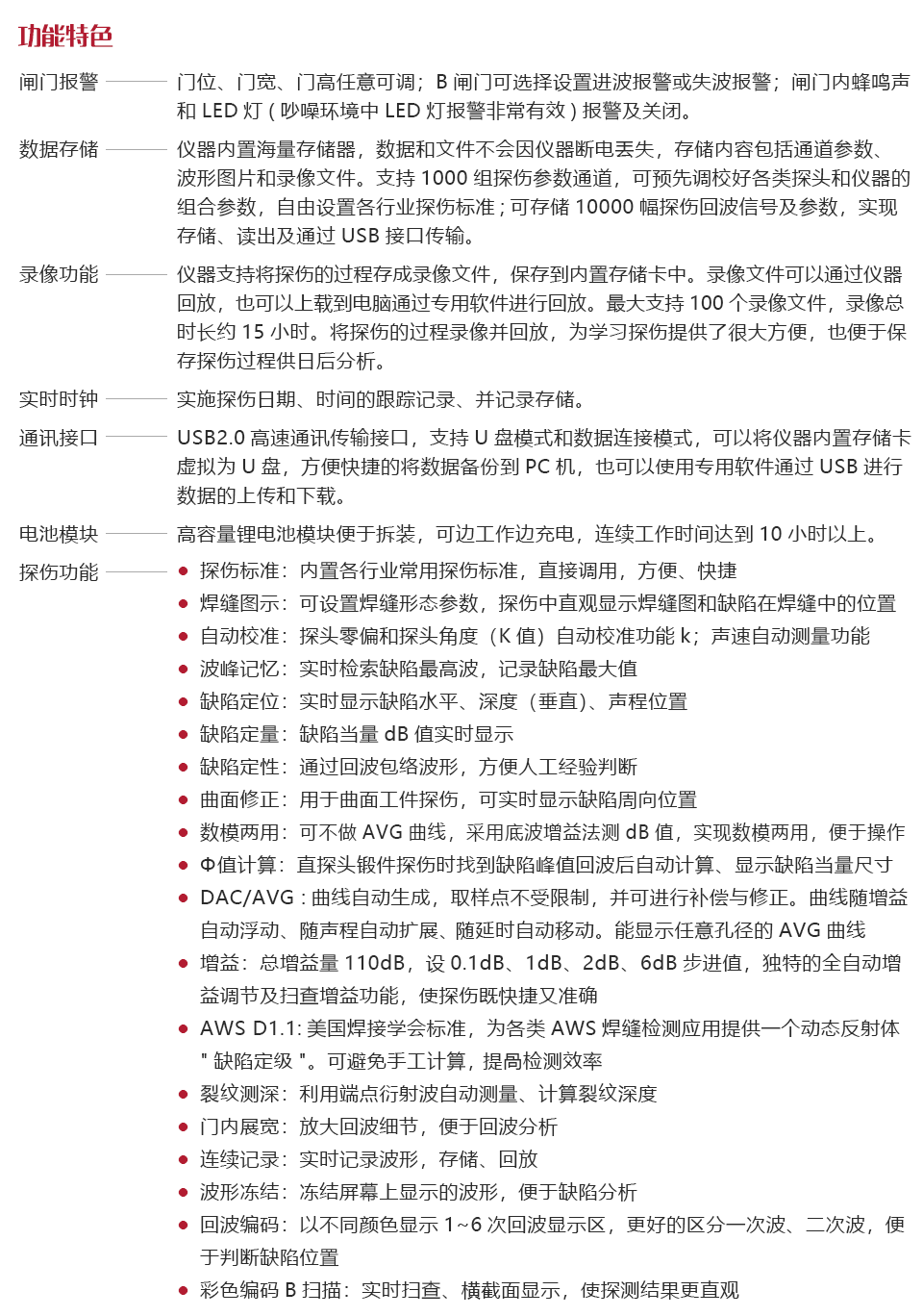 | 自動校準 | 探頭零點和探頭角度(K值)自動校準功能;聲速自動測量功能 |