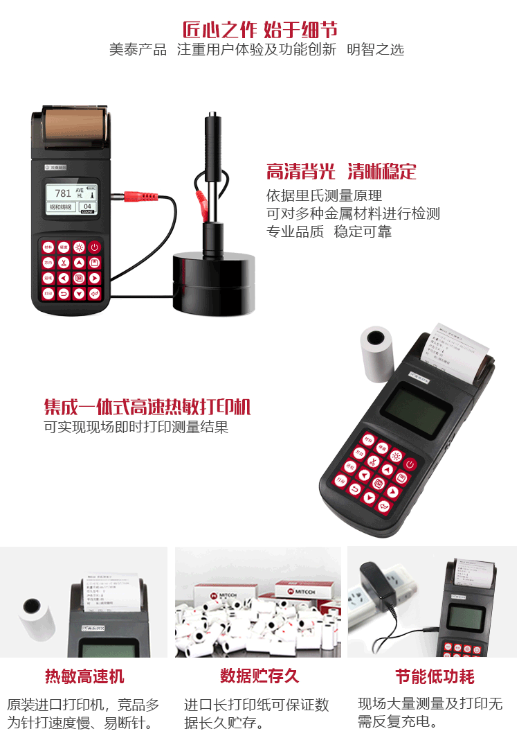 MH500便攜式里氏硬度計基于里氏硬度測量原理,可方便快捷地現場檢測多種金屬材料的硬度,支持里氏、布氏、洛氏等多種硬度制氏間的自由轉換。它采用128×64圖形點陣液晶屏,信息豐富直觀,性能穩定,集成一體式高速熱敏打印機,可實現現場即時打印測量結果,被廣泛地應用于金屬加工制造業、特種設備、永久性組件的失效分析、商檢等領域。特別適宜對大型零件及不可拆卸部件的現場硬度測試。是提高生產效率與合格率、節約生產成本的明智之選。