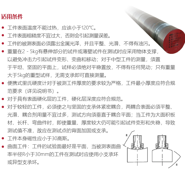 里氏硬度:規定質量的沖擊體在彈力作用下,以一定速度沖擊試樣表面并回彈,用沖擊體在距試樣表面1mm處的回彈速度與沖擊速度的比值計算硬度