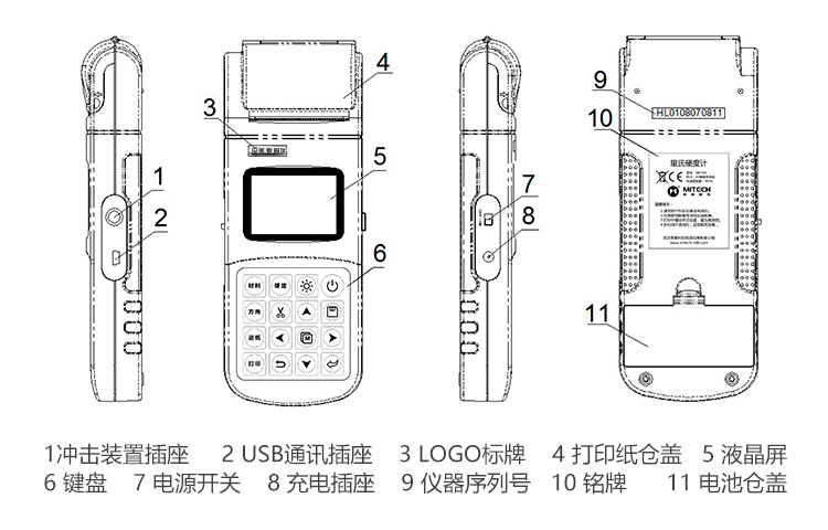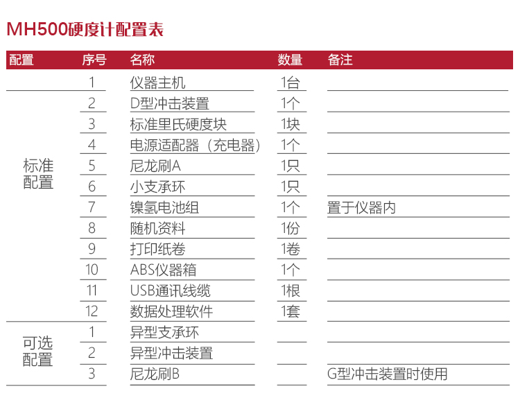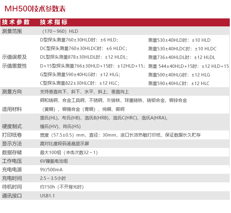 可存儲最大500組(沖擊次數32~1)硬度測量數據,每組數據包括單次測量值、平均值、測量日期、沖擊方向、次數、材料、硬度制等信息。