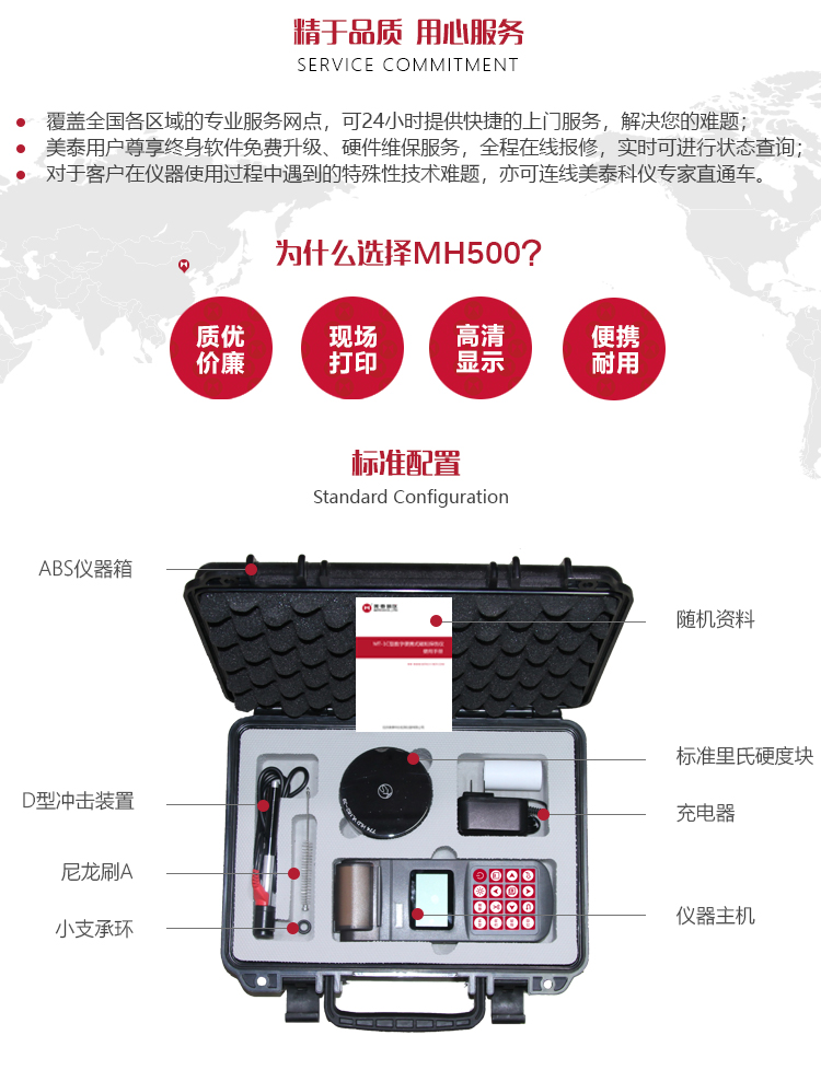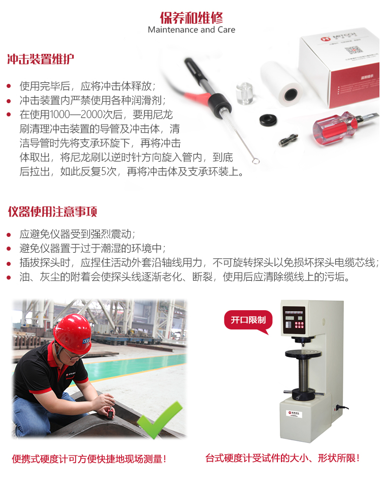 美泰便攜式里氏硬度計G型沖擊裝置,高:255mm   重:250g   直徑:30mm  內置G型沖擊裝置,G型沖擊體及G型球頭均比其它沖擊體更大,沖擊能量約為D型球頭的9倍,沖擊力大,對檢測表面的光潔度要求較低,適用于重量在15kg以上厚度在10mm以上、硬化層1.2mm以上的堅硬、較大的厚重及表面較粗糙的鑄鍛件,常用于:汽車底盤的硬度檢測;已安裝的機械或永久性組裝部件;大型工件大范圍內多處測量部位的快速檢驗;壓力容器、汽輪發電機及其它設備失效分析;軸承及其它零件生產流水線;金屬材料倉庫的材料區分;熱處理工件的質量控制等。可實現里氏、布氏、洛氏等硬度的精確測量。