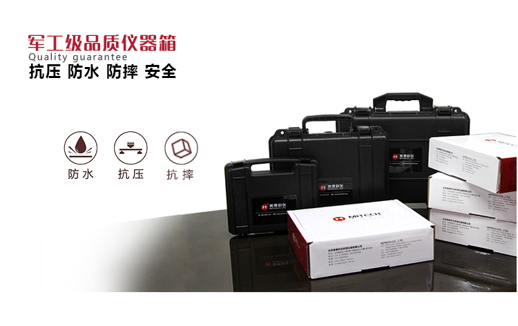 美泰系列便攜式里氏硬度計儀器箱,長:35.5cm;寬:19cm;高:11cm;重:1.5kg。采用ABS工程塑料精制而成,密封防水、抗摔防震,具有耐熱性、耐低溫等優良性能,可有效防御惡劣環境中的油污、粉塵及各種腐蝕,箱體尺寸符合航空、列車攜帶標準(可放于座位底下和行李架上),安全、可靠、穩定。